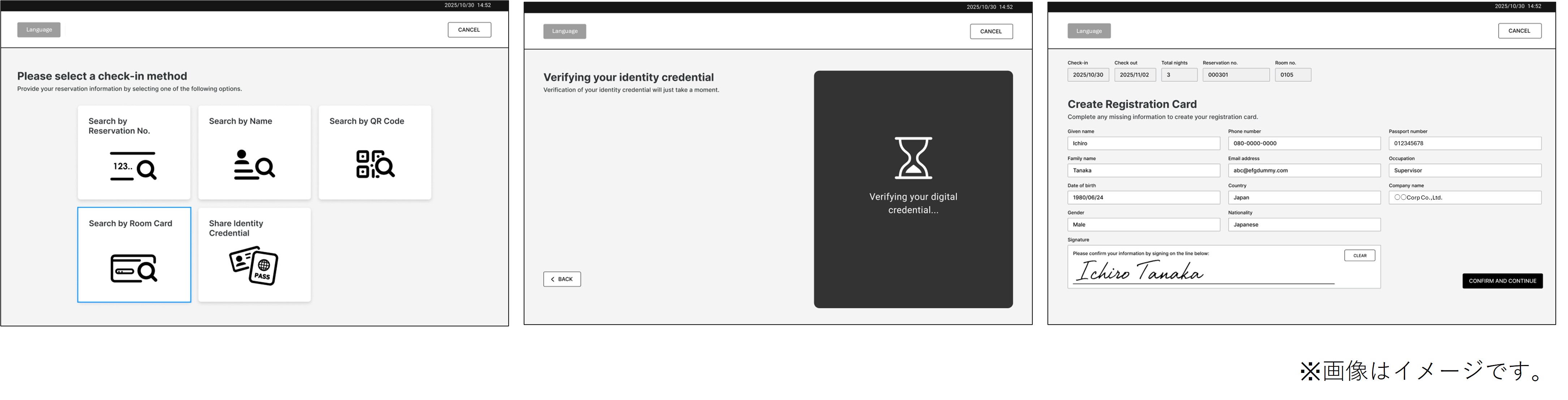 両社は、ソラーレ ホテルズ アンド リゾーツ株式会社の協力の下、デジタルパスポートとホテルのKIOSK端末*1を連動させた実証実験を行います。2026年1月20日にロワジールホテル 品川シーサイドで、3月からはUSEN-ALMEXのオンライン事前チェックインサービス「PreCheck-in(プリ・チェックイン)」*2を導入したホテルで実施します。次世代型チェックインの有効性を検証し、その結果をもとに両社は将来的なサービス拡張に取り組んでいきます。