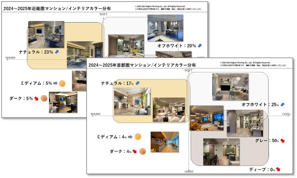DNPでは、長年にわたりマンションのインテリアトレンド調査を行い、オリジナルブランド製品であるDNP内装用化粧シート「サフマーレWS」やDNPフローリング用化粧シート「BE-F」などの開発に活かしてまいりました。 本コラムでは、2025年7月に開催したセミナー「DNP Design Days 2025 Summer」でご紹介したマンションモデルルーム調査2024~2025から抜粋した内容を、インテリアコーディネーターや建築設計デザインに関わる皆さまに向けてご紹介いたします。- 建装材