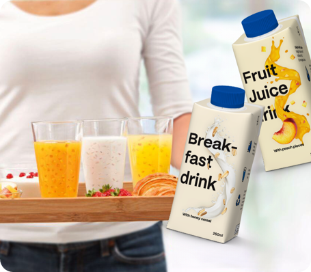 SIGの液体紙容器は、優れたデザイン性やユーザビリティが特長の「SIG Small」や「SIG Dome」等の多数の形状の液体紙容器を販売しています。また、固形物や高粘度の液体等の充填が可能なため、プレミアム飲料の製造を実現できます。SIGの液体紙容器は、他のプラスチック製の飲料容器と比較して、プラスチック使用料削減に貢献可能な環境に配慮した包装材料です。
