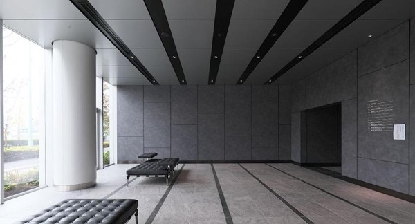 石を模したアートテックを活用した長谷工南砂町駅前ビル(東京都江東区、2018年施工) |