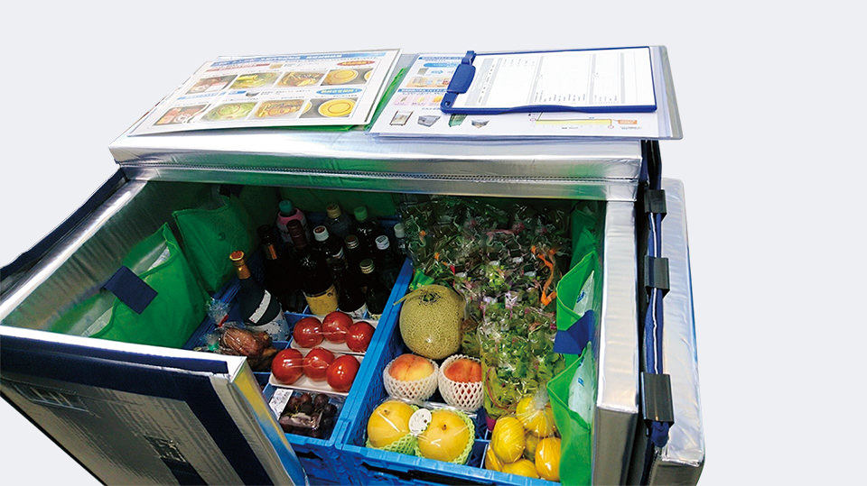 電気を使わずに、内部の温度を長時間一定に保つことができます。生鮮食品や工業品、医薬品など、十分な温度管理が必要な物流の課題解決に貢献します。常温品と冷蔵・冷凍品の混載輸送による効率化、リユースによる使い捨て資材の削減など、環境への負荷も大きく低減する製品です。