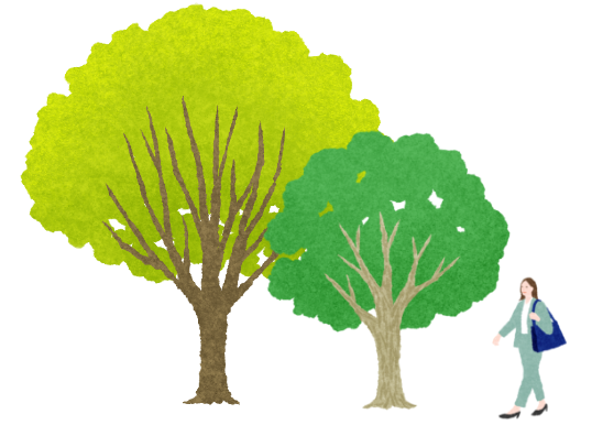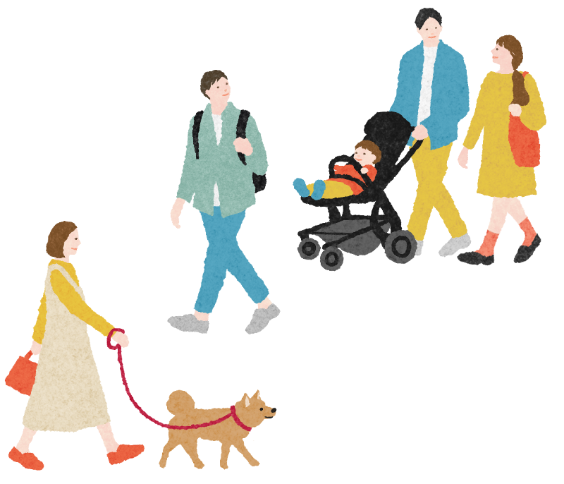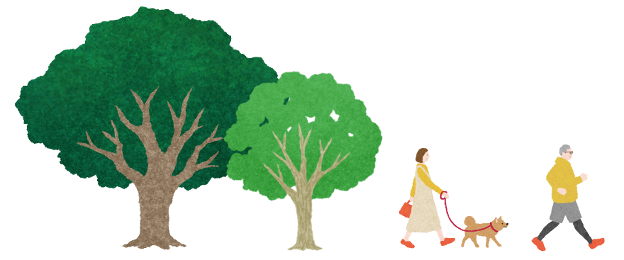 近隣住民の憩いの場や、近隣保育園の児童たちの散歩コースとなっています。人の通行が多い場所は見通しや安全性の確保が重要であるため、視界を遮る高さの“葉張り”は避けています。