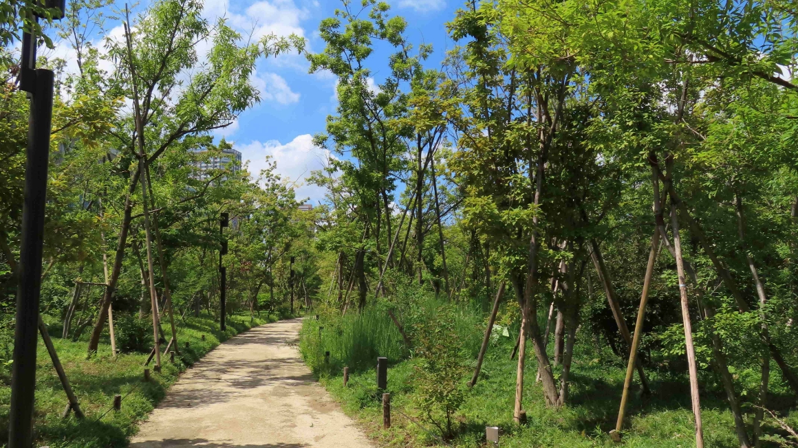 2015年には、20種以上の高木、70種以上の低木、下草など地域固有の在来種を選び、自然界と同様の起伏に合わせて植栽しました。現在(2024年3月)まで、平均すると8年間で約1.3m樹高が伸びており、最大で4m伸びた木も。