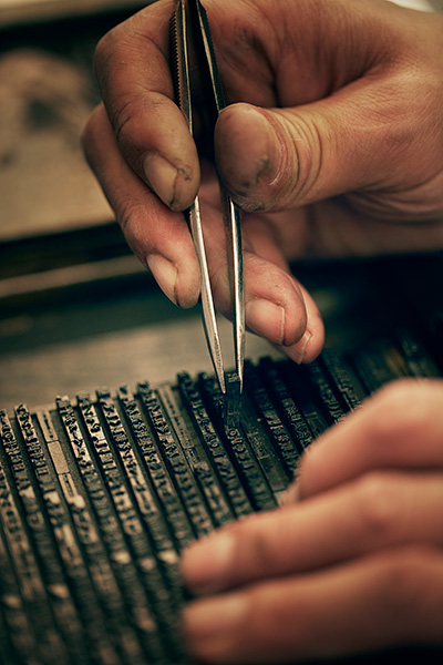 館内には、活字を拾い、組版をつくり、印刷して、製本する職人が在中していて、作業の様子をご覧いただくことができます。