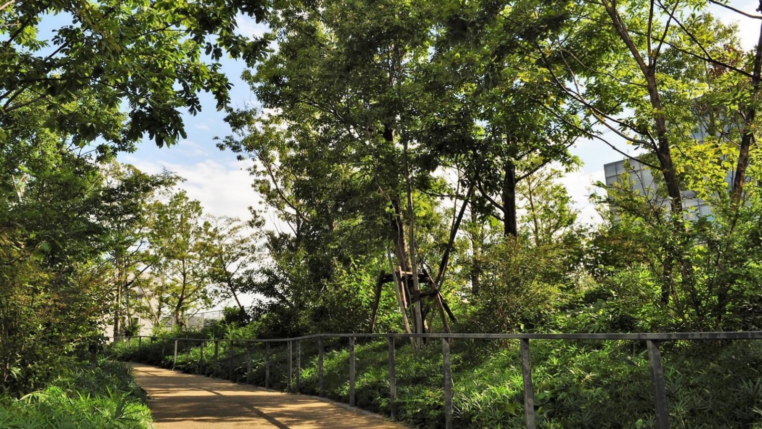 “武蔵野の雑木林”をイメージした市谷の杜の遊歩道。