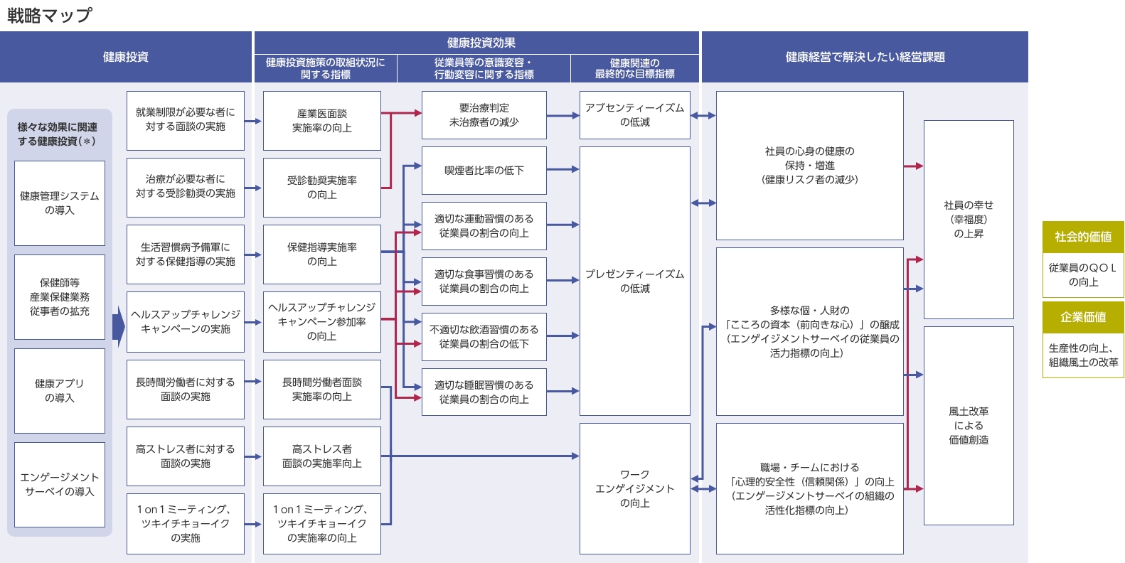 により、社員の幸せ(幸福度)を高める健康経営・健康施策を推進することで、