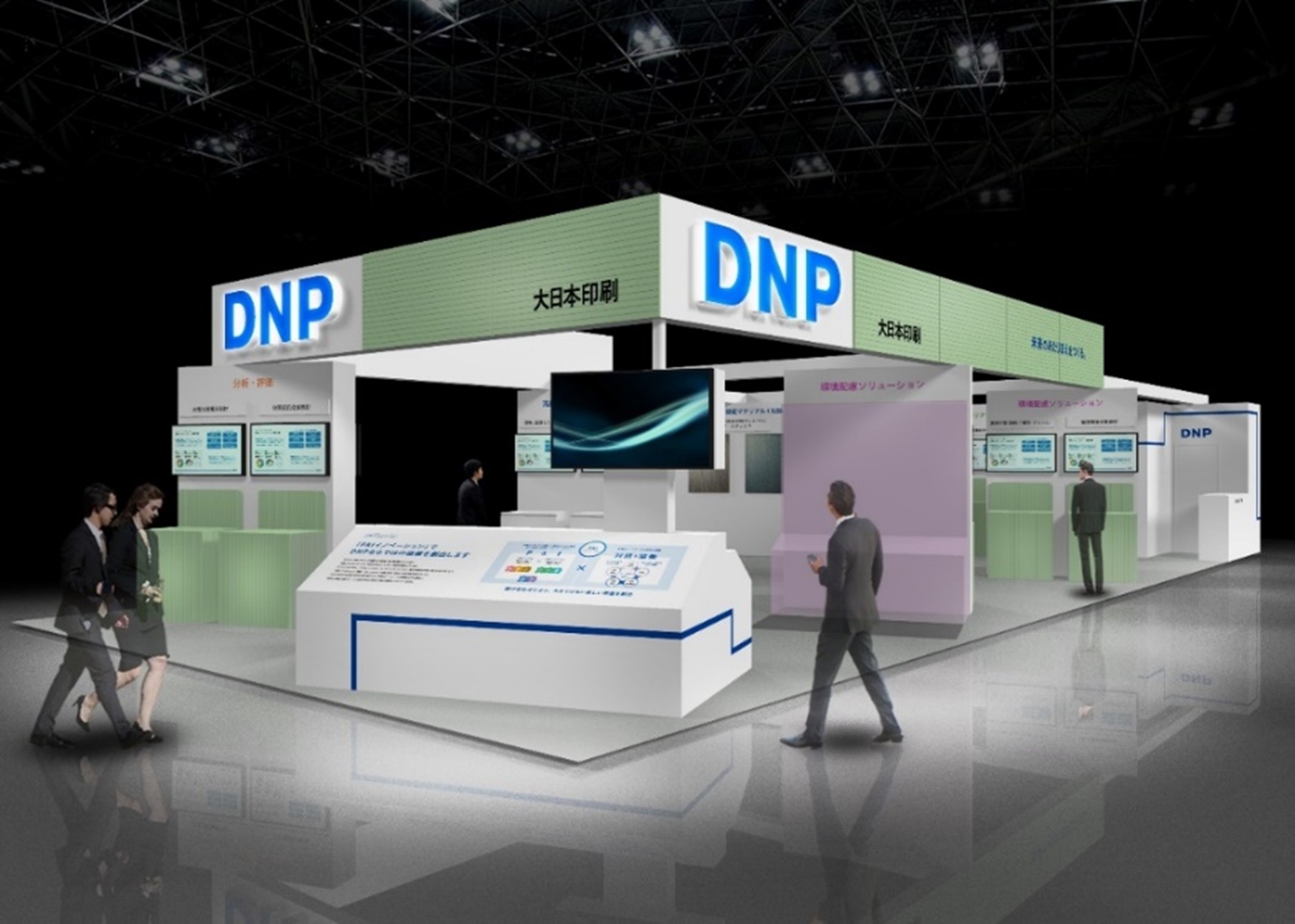 DNPのブースには、環境に配慮したさまざまな工夫を施しています。今回出展するブースの構成材や展示什器には、自社工場から排出された不要物 を再利用したリサイクル素材を活用しています。また、出展にあたって使用した空調や照明などのエネルギー使用量を見える化し、カーボンオフセットの取り組みも実施します。
