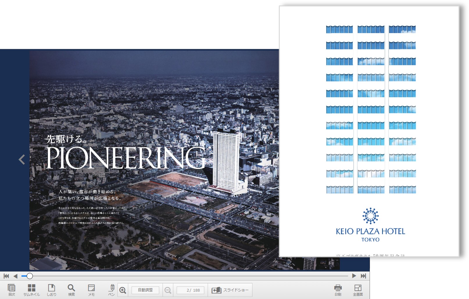 - 京王プラザホテル公式サイトの50周年特集ページに掲載した電子ブック