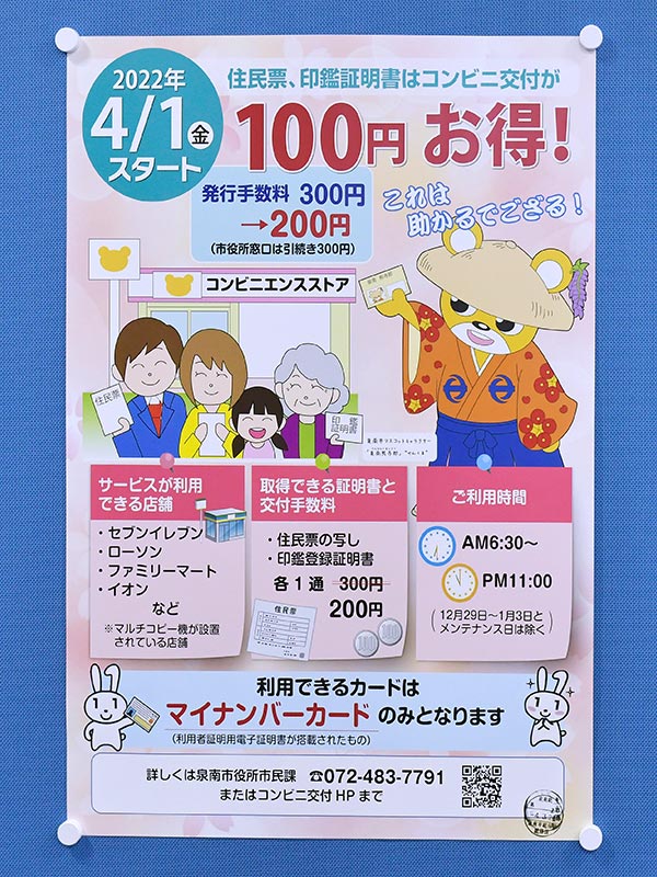 コンビニ交付⼿数料の減額に関する告知チラシ |