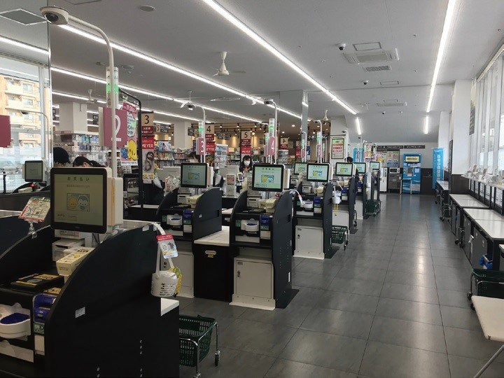 「いなげや 川崎京町店」では、全12台のセミセルフレジを導入 |