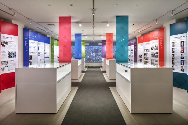 草創期からの歴史と現在、そして未来を紹介する施設として開設された歴史館。歴史ある建物の雰囲気を残しながら歴史館全体の統一感をもたらすデザインとあわせ、エリアごとに異なるデザインや配色によって大学の多様性や在野精神を表現しています。