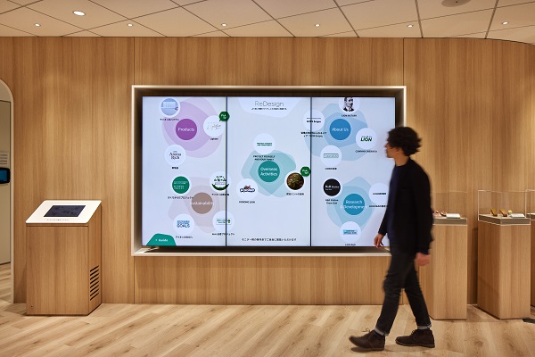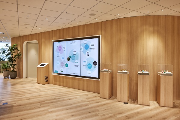 2階はライオンのアクティビティを伝える場であり、お客さまと社員の交流の場です。デジタルコンテンツや製品、アーカイブ品などの展示物を通して、過去から現在、未来に向けたさまざまな情報発信を行い、ライオンを知っていただくスペースです。ニューノーマル時代において、オフィスのあり方を見直し、展示体験やコミュニケーションを通して、社内外のエンゲージメント向上にかかせないエリアとなっています。