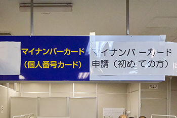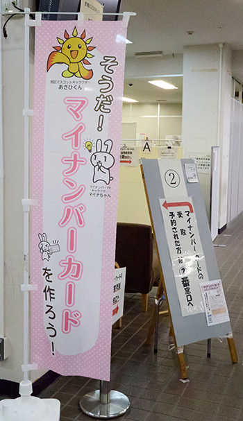 旭区役所 マイナンバーカード申請窓口の案内板 |