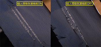 (左)個人情報保護機能ON、(右)個人情報保護機能OFF |