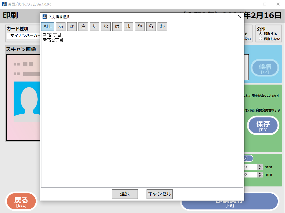 | 住所情報からの住所選択機能 |