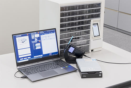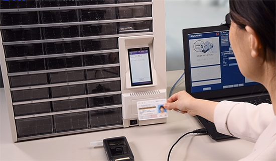 重要物管理機と連携している場合、アプリケーション側で正常に点呼を終了したドライバー情報が重要物管理機側へ届きます。免許証を重要物管理機のICリーダーへかざすと、設定された車両に紐づいた箇所が開くようになってます。そのため、ドライバーに貸与する車両の鍵、ETCカード等の授受を重要物管理機で管理することで、「点呼後でないと持ち出しができない」「間違いない持ち出し管理」を実現できます。