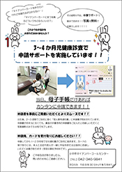 できるだけ保護者様の負担を軽減するために、11月からは診査案内に別紙で申請サポートの案内を同送し、個人番号通知書に同封された申請書に事前に記入したものを持参していただければ、よりスムーズとなることをご案内しています。