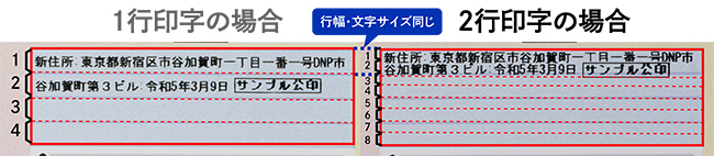 その他、住所が非常に短いなど追記の文字数が短い場合も視認性向上を優先し、1行印字で文字を大きく印字しています。