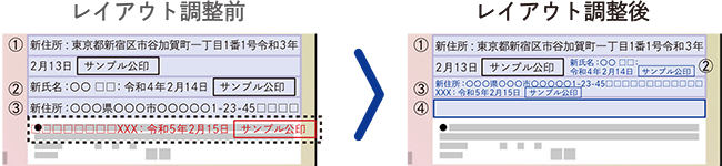 マイナンバーカード追記時のレイアウト調整前後のイメージ |