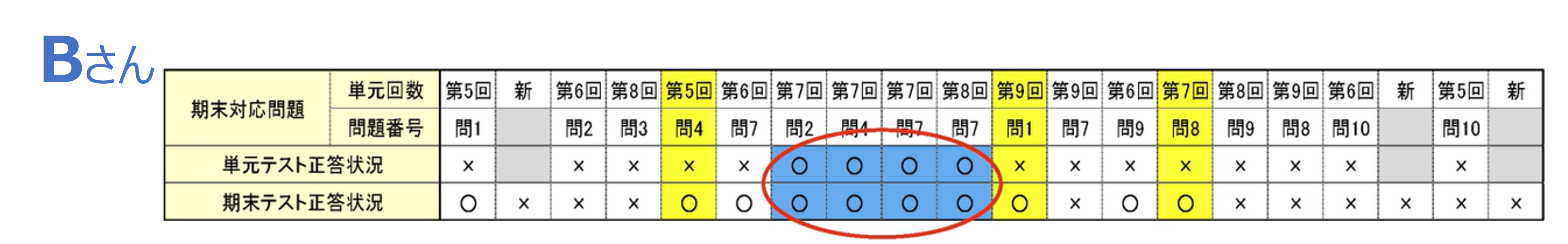 児童Bさんは単元テストでできなかった問題を"レコシートで全部やり遂げたら期末テストはできるようになるよ"と声掛けしたところ、期末テスト時には定着し、できるようになった。」など定着度に応じた指導を実施。すると、児童は"自分がどんな問題ができなくなったか"、"どんな問題ができるようになったか"について関心を抱くようになったといいます。