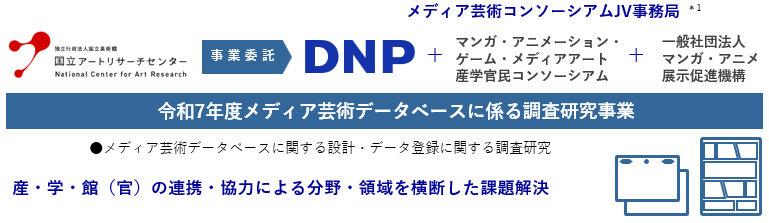 *1メディア芸術コンソーシアムJV事務局 : DNPと、マンガ・アニメーション・ゲーム・メディアアート産学官民コンソーシアム、一般社団法人マンガ・アニメ展示促進機構の3者が共同運営しています。
