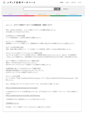 メディア芸術の作品情報や所蔵情報をアーカイブした「メディア芸術データベース」の整備、公開を実施