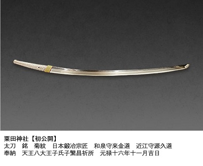 「粟田神社」「建勲神社」「豊国神社」「藤森神社」の刀剣・社宝を京都文化博物館別館にて展示
