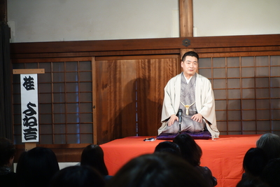 昨年の実施が好評を博し、再演となった宝蔵寺での落語プログラム。
