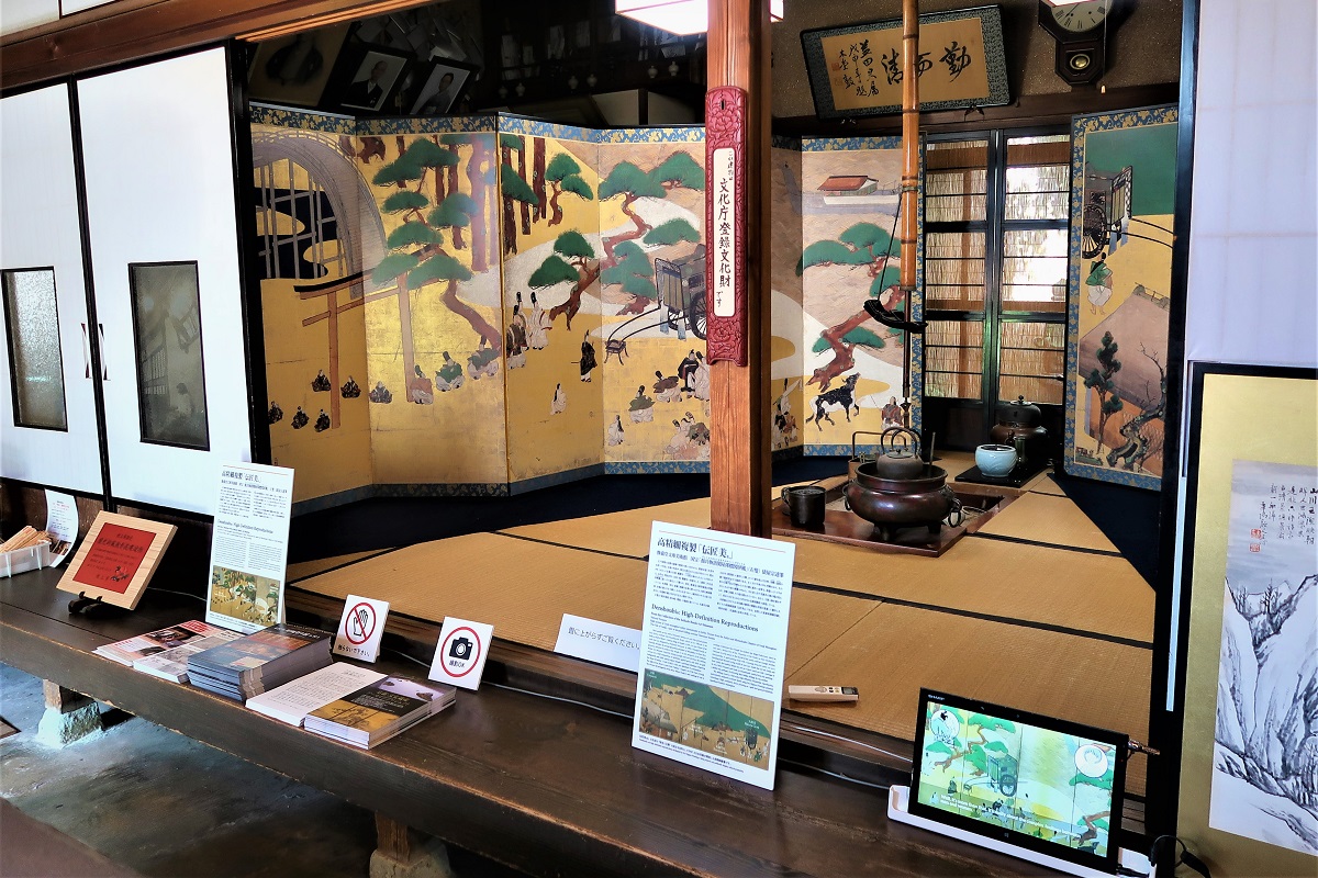 こちらでは、奥にある茶の間をお借りして、「源氏物語関屋澪標図屏風」を展示いたしました。