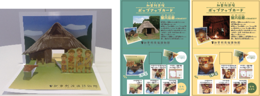 カードを開くと縄文時代の竪穴住居が立体となって飛び出す工作体験です。