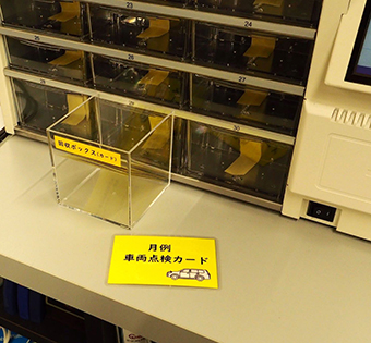 車両の鍵取り出し時の「点検カード」の有/無で、車両点検実施の要/不要が把握できる、便利な活用法です。