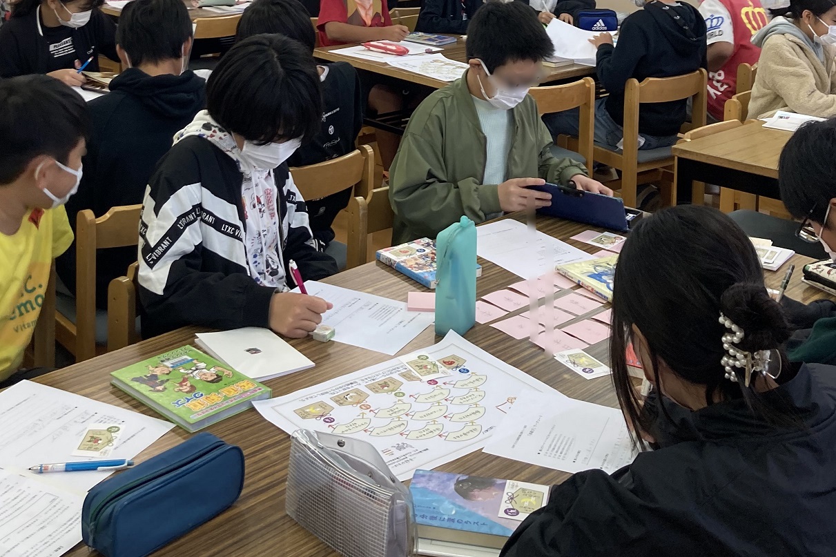自分の好きな本や好きなこと、読みたい本のイメージについてカードに書き込むワークを行いました。自分の気持ちをアウトプットすること、それを友だちへ共有する体験をしてもらいました。