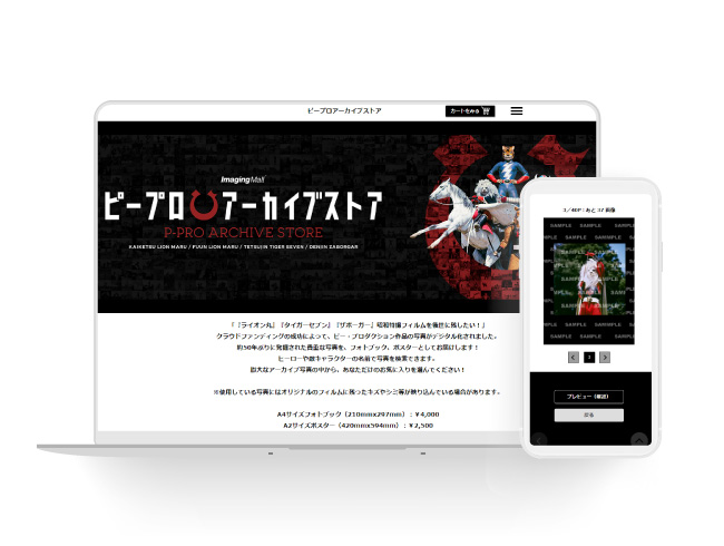 自分の好きなヒーローやキャラクターだけを集めた、自分だけのフォトブック。そんなファンの夢を体現するのが、Imaging Mall® with オンラインを導入された株式会社バリュープラスさまが運営するECサイト「ピープロアーカイブストア」です。同サイトでは、映像製作会社ピー・プロダクションが1970年代に生み出した特撮ヒーローのジークレー額装などコレクション性の高い商品がラインナップされています。