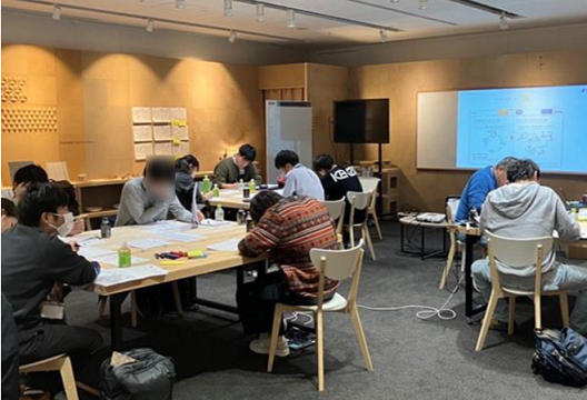 最後のステップでは、構想した3つのサービスコンセプトのビジネスモデルとPoC計画について議論しました。改めてJRグループとしての強みは何かを言語化し、強みを活かしたビジネスモデルや何を最初に検証しないといけないか、どのような方法でPoCを実施すべきかなどをコアメンバーで議論しました。