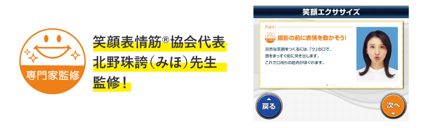 【POINT】専門家監修の笑顔ガイダンスを搭載