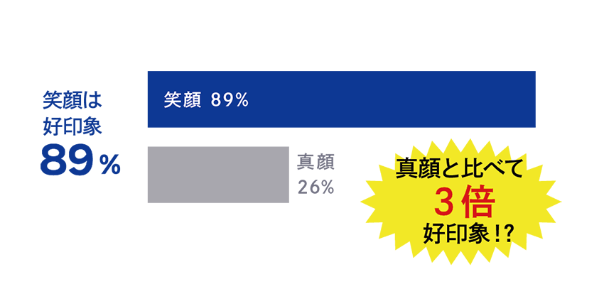 当社が実施したアンケート調査でも、「笑顔の写真は真顔に比べて3倍好印象」(※)という結果が出ており、笑顔の写真が組織に与えるポジティブな影響がうかがえます。