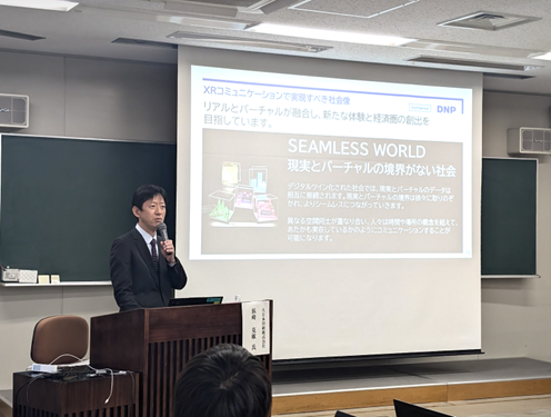 一般社団法人プラチナ構想ネットワークが主催する「プラチナ構想スクール@葛飾」にて、DNPのXRコミュニケーション®事業開発ユニットのユニット長である浜崎が葛飾区役所職員向けに講演を行いました。講演の後は、現在多くの自治体で活用されている「メタバース役所」サービスの体験会も実施されました。