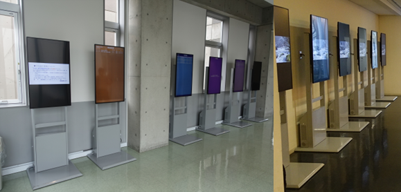 現在は、リアルタイム更新機能や端末単位でのコンテンツ出し分け機能をご活用いただき、授業情報や行事等の学内情報、ブランディングにつながるPR情報など、質の高い情報発信に貢献しています。一般学生のみならず、留学生や生涯学習など、利用者が多様化していく大学において、情報配信サイネージの役割は重要なものとなっております。