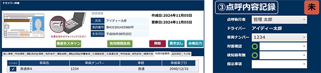 アルコールチェックや免許証チェック時に発生する、管理者の確認・作業負担軽減に最適です。