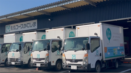 生協コープかごしまでは、食材や生活用品の配送ドライバーだけでなく営業社員も車両を利用しており、車両が多い拠点では約50台、車両が少ない拠点では約15台と幅があります。