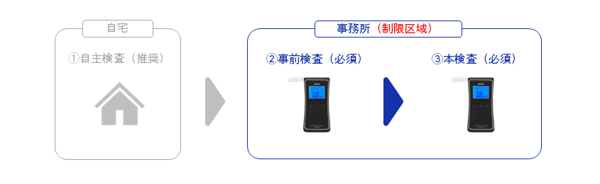 勤務する際は、1日3回のアルコールチェックを実施していました。「本検査」は法令で定められている検査で、アルコールが検出された場合、航空局への報告義務があります。アルコールによるあらゆる不具合事象を防ぐために、検知器の動作確認も兼ねて「事前検査」を必ず行っていました。本検査と事前検査は必須で行いますが、予備チェックとして、自宅で「自主検査」を推奨していました。