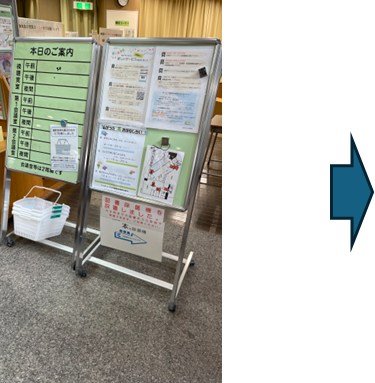 もともと掲示板の右側に練馬区からのお知らせ、左側に光が丘図書館の会議室利用予定をアナログで掲示していたところを、デジタルサイネージに置き換えました。サイネージ化したことで、遠隔から掲示内容を変更することができ、ご担当者様の業務効率化につながっています。