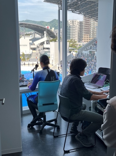 会場天井部に設置されたカメラでオルカ(シャチ)ショーを撮影しています。 |