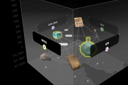 会社の沿革や商品・サービス情報をキューブ(立方体)状のインタフェースを通して、テーマや関係性などの多様な視点から紹介できる情報可視化ツールです。