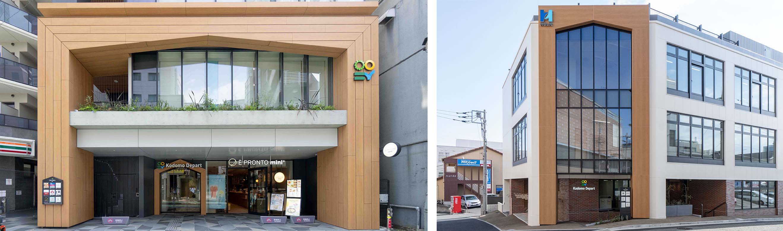 2025年4月、ヒューリック株式会社様(以下、ヒューリック)が手がける新たな子育て・教育拠点「こどもでぱーと 中野」および「こどもでぱーと たまプラーザ」が開業しました。学習塾や習いごと、保育所、学童、小児科、送迎サービスなど、子育てと教育に関わる機能を集約した施設です。その両施設の外観で象徴的に用いられているのが、「DNP内・外装焼付印刷アルミパネル アートテック®」を採用した門型フレームです。
