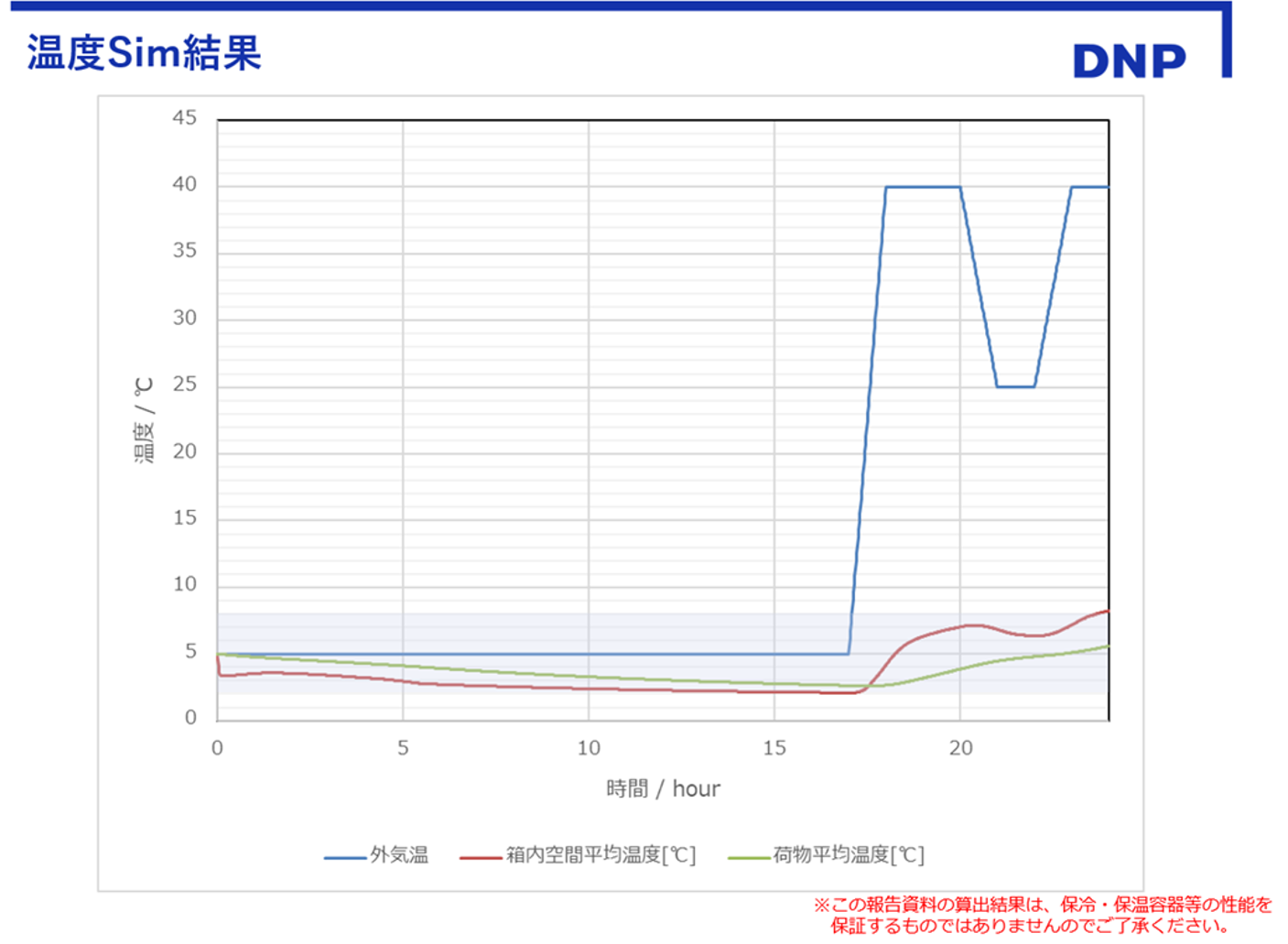 まずは、既存のパレットサイズの断熱ボックスを無償でお借りし、温度試験を実施。シミュレーション結果と実測値の差異を確認した上で、断熱材の厚みなどを調整し、再度シミュレーションを実施しました。