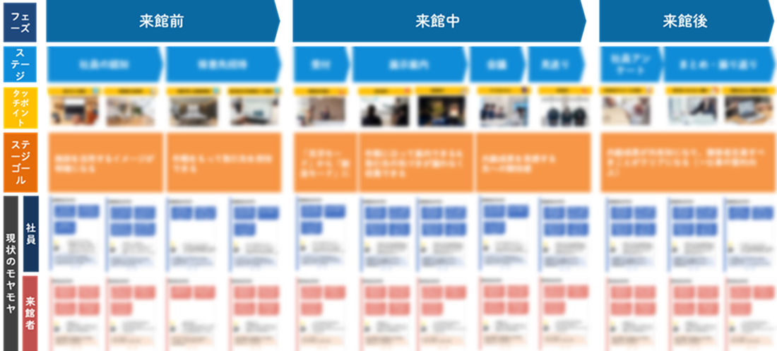 ・来館者体験のばらつき:招待・案内・会話・議論など、来館前後の一連の体験に統一された設計がなく、共創が自然発生するストーリーが欠けていました。