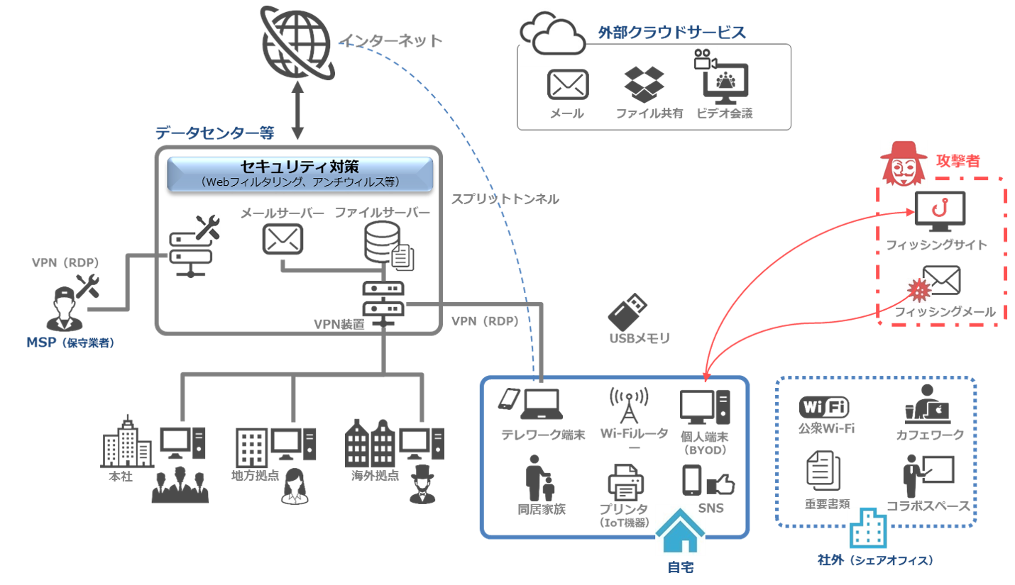 在宅勤務をはじめとするテレワークは、新型コロナウイルスとの共存を強いられる時代の、新しい働き方の象徴と言っても過言ではありません。しかし、限定的なセキュリティ対策で、急遽テレワーク環境を整備した企業も多く、こうした環境を狙ったサイバー攻撃のリスクが増しています。