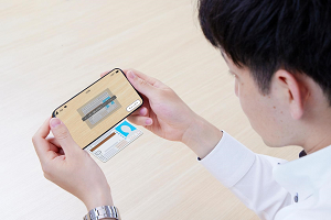 「ホ」方式は、本人の容貌写真と、写真付き本人確認書類を送信させるeKYC手法です。まず運転免許証などの写真付き本人確認書類をスマートフォンで撮影します。このとき、表面・裏面に加えて本人確認書類の厚みも撮影することで、本人確認書類の真正性を確認しています。