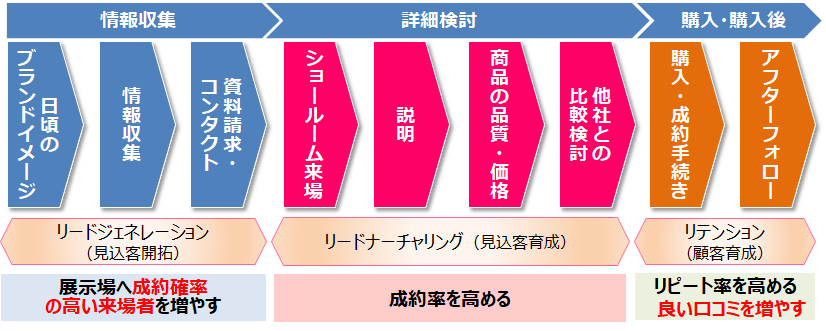 1.Webサイトなどでいかに引き付け、ショールームに誘導するか。